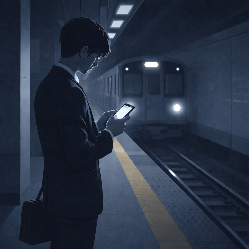 柱に背を預けて、スマートフォンのニュースフィードをスクロールしている。記事の内容は頭に入ってこない。イヤホンを両耳に刺しているが、何も流していない。それでも外していないのは、話しかけられたくないからではなく、ただ習慣だからだった。